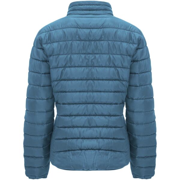 Gewatteerde damesjas met donsvulling. Omgekeerde ritsen met bijpassende kinbeschermer en trekker. Twee voorzakken met rits. Bijpassende elastische rand in kraag, manchetten en zoom. Contrasterende binnenvoering. Inclusief opbergtas. Lichtgewicht en opvouwbaar kledingstuk. Nauwsluitende pasvorm. Verwijderbaar etiket. Waterafstotend. Winddicht. Het model is 179 cm en draagt maat S.
