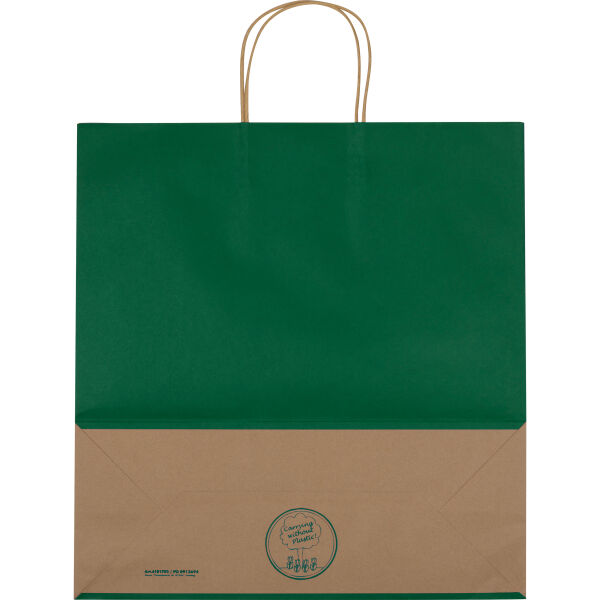 Mileuvriendelijke draagtas, herbruikbaar en van gereyceld papier, (120grm2) met bodemvouw en draaghengsels. Uw reclame bedrukken wij op 1 of beide zij…